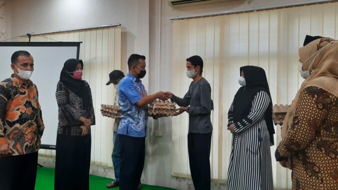 Banda Aceh – Dinas Peternakan Aceh menyerahkan bantuan telur ayam kepada warga kota Banda Aceh bertempat di Aula Dinas Pangan Pertanian Kelautan dan Perikanan (DPPKP) Kota Banda Aceh, Kamis (27/01/2022).