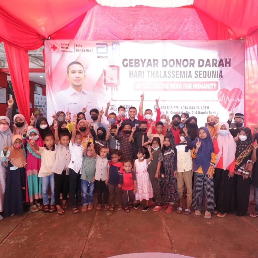 Banda Aceh – PMI Kota Banda Aceh bekerja sama dengan Abbott menyelenggarakan kegiatan gebyar donor darah di halaman Kantor PMI Kota Banda Aceh pada Rabu, 2 Maret 2022. Kegiatan tersebut dihadiri oleh 50-an anak-anak talasemia dari berbagai kabupaten/kota di Aceh.