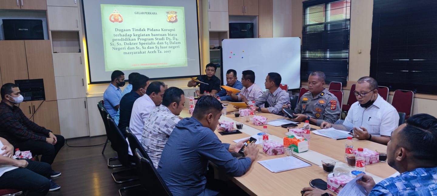 Banda Aceh – Polda Aceh menetapkan tersangka kasus korupsi beasiswa tahun 2017 melalui gelar perkara, Selasa, 1 Maret 2022 di Mapolda Aceh.