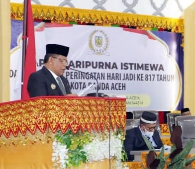 Banda Aceh – Wali Kota Banda Aceh, Aminullah Usman menyampaikan sejumlah keberhasilan dari program-program Pemerintah Kota Banda Aceh di hadapan Pimpinan dan Anggota DPRK Banda Aceh pada sidang paripurna istimewa HUT Kota Banda Aceh ke 817, Jumat (22/4/2022).