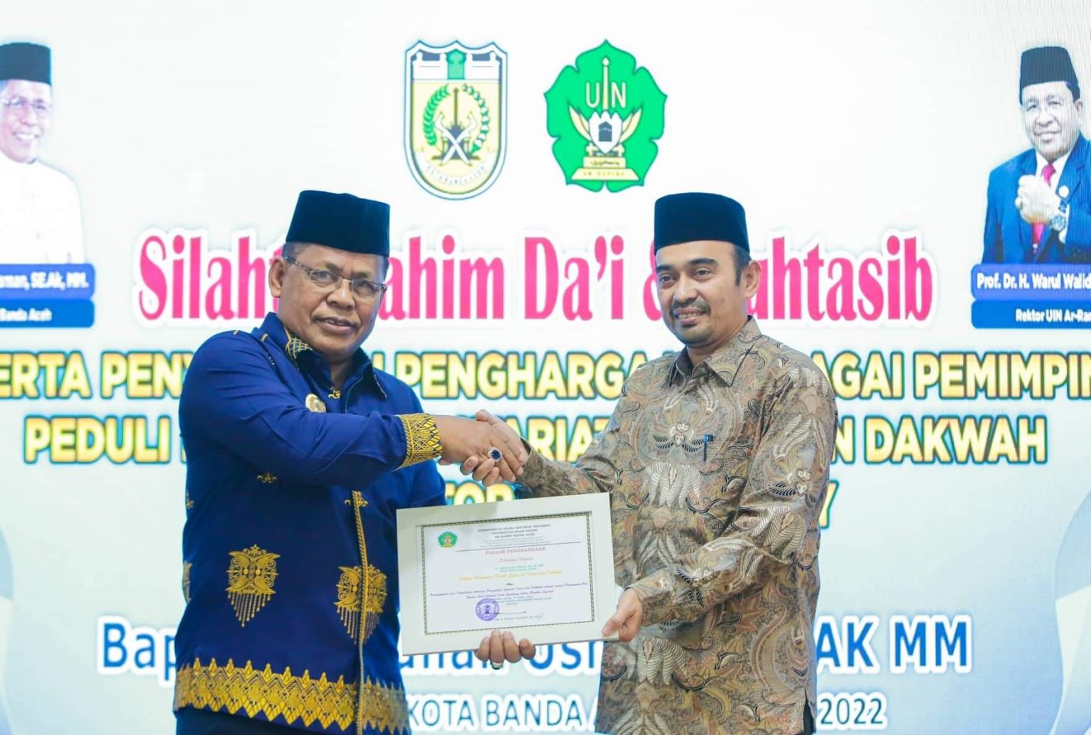 Penghargaan tersebut diserahkan oleh Wakil Rektor UIN Ar-Raniry, Prof DR Saifullah Idris mewakili Rektor, Rabu (27/4/2022) pada acara buka puasa bersama wali kota dengan dai dan muhtasib gampong di pendopo.