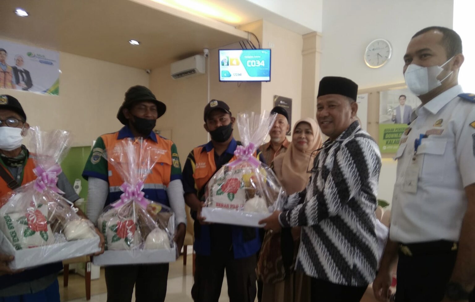 Banda Aceh – Wakil Wali Kota Banda Aceh Drs H Zainal Arifin melakukan penyerahan bantuan sembako secara simbolis kepada enam pekerja atau buruh di Kota Banda Aceh, Kamis (19/05) di Kantor BPJS Ketenagakerjaan Cabang Kota Banda Aceh.