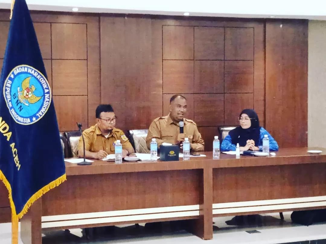 Banda Aceh – Kepala Badan (Kaban) Kesbangpol Kota Banda Aceh, Bachtiar S.Sos menjadi Pemateri/Narasumber pada acara Fasilitasi Advokasi Program Ketahanan keularga Anti Narkoba Berbasis Sumber Daya Pembangunan Desa, yang diselenggarakan oleh pihak Badan Narkotika Nasional (BNN) Kota Banda Aceh di Rooftop Abraj Hotel Grand Arabia Banda Aceh, (Senin 27 Juni 2022).