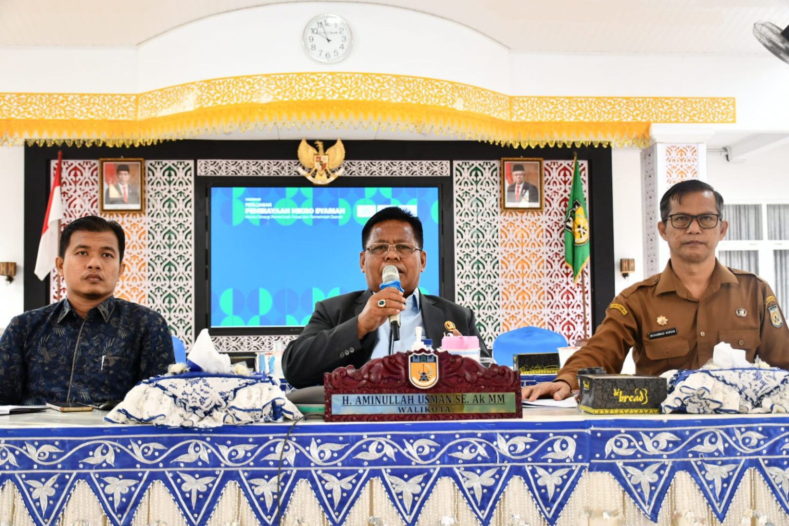 Banda Aceh – Wali Kota Banda Aceh Aminullah Usman mengisi materi dalam Webinar via zoom dengan tema “Perluasan Pembiayaan Mikro Syariah melalui sinergi Pemerintah Pusat dan Pemerintah Daerah” pada Selasa, 28 Juni 2022, di Pendopo Wali Kota.
