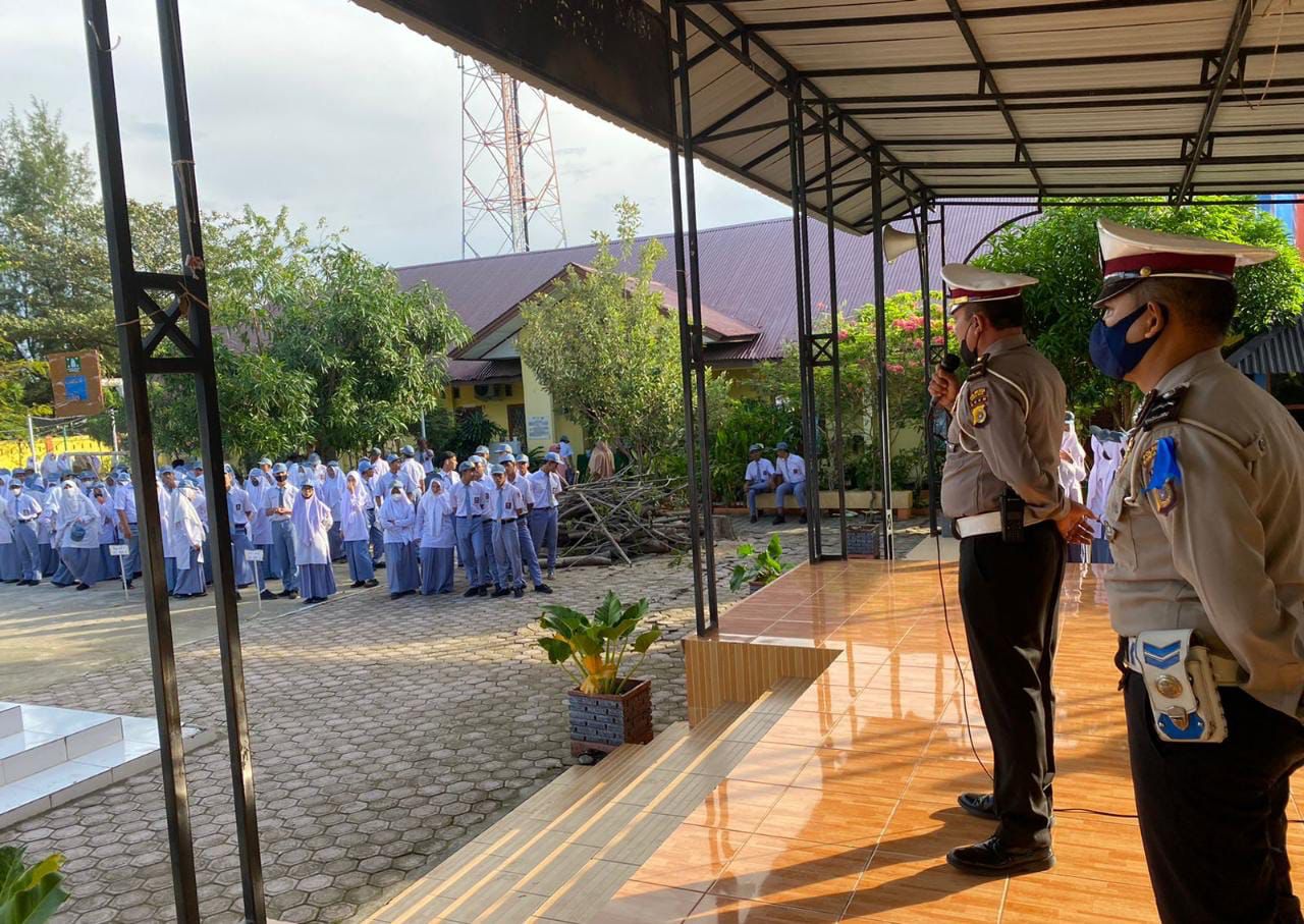 Banda Aceh – Personel Satuan Lalu-Lintas Polresta Banda Aceh mensosialisasikan keselamatan guna meningkatkan kesadaran pelajar, agar lebih aman dalam berkendara di jalan raya.