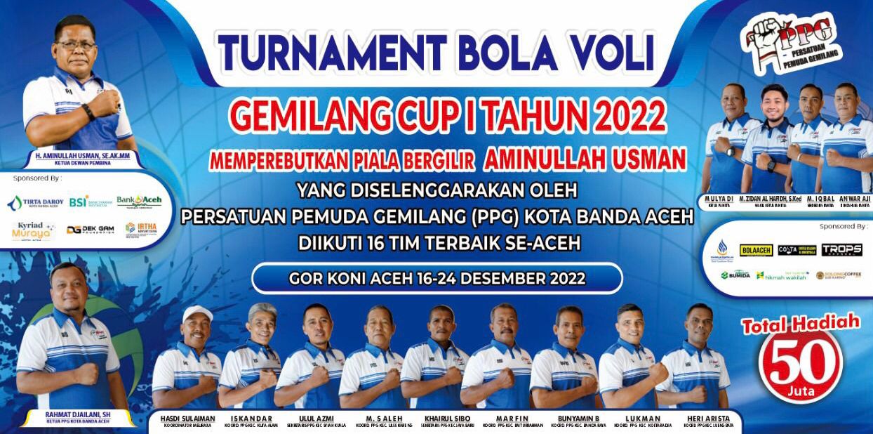“Turnamen Bola Voli Gemilang Cup tersebut merupakan kegiatan tahunan PPG Banda Aceh dengan memperebutkan piala bergilir Aminullah, namun karena situasi pandemi maka pagelarannya tertunda, dan atas kerja keras serta kekompakan jajaran PPG Banda Aceh, Alhamdulillah kegiatan tersebut dapat digelar tahun ini, dengan memperebutkan total hadiah Rp.50 Juta.” Terang mantan Wali Kota Banda Aceh ini.