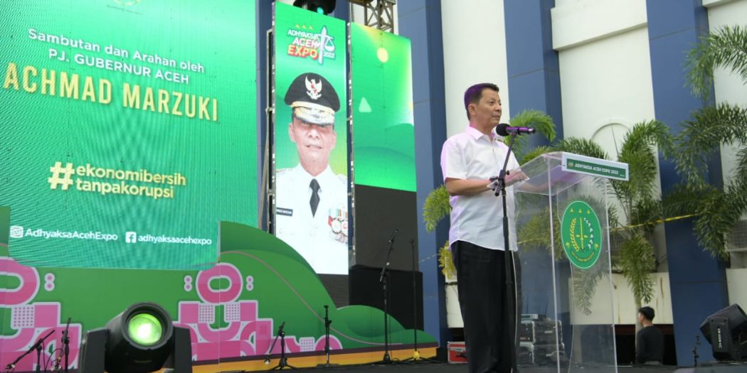Banda Aceh – Penjabat Gubernur Aceh, Achmad Marzuki membuka Adhyaksa Expo 2022, di Balee Meuseuraya Aceh, Kamis (8/12). Adhyaksa Expo adalah kegiatan yang diselenggarakan Kejaksaan Tinggi Aceh dalam rangka Hari Anti Korupsi Sedunia 2022.