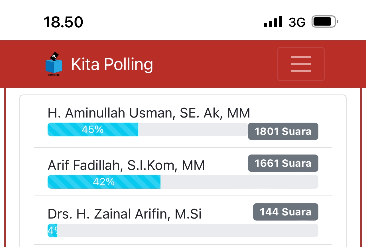 Media ini pun mencoba melakukan konfirmasi kepada Aminullah Usman terkait Polling tersebut, dikonfirmasi via cellular, Aminullah mengucapkan terima kasih kepada masyarakat yang telah memberikan vote kepadanya via polling itu.