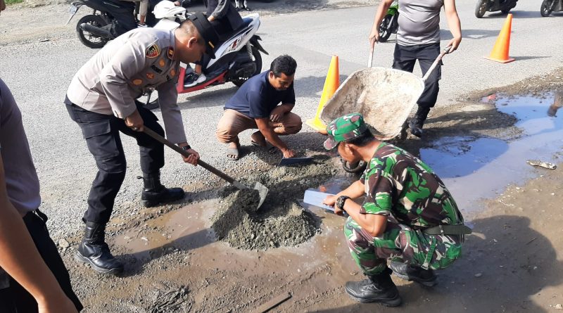 Sebagai pengayom masyarakat pihaknya merasa terpanggil untuk melakukan perbaikan jalan yang berlubang demi keselamatan warga yang melintasi badan jalan. Ujar Iptu Roby Afrizal.