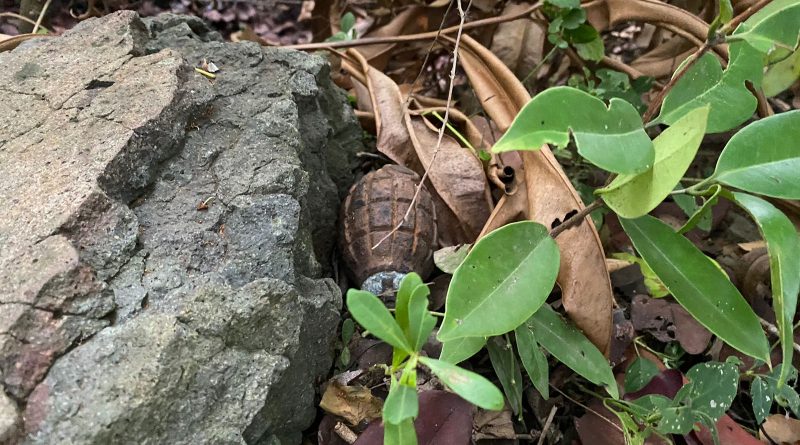 Aceh Besar – Safrizal (29) bersama temannya Bactiar Razali (40) menemukan benda bermotif kotak – kotak diduga kuat granat tangan jenis nanas di pinggir pagar kebun di Gampong Durung, Kecamatan Mesjid Raya, Aceh Besar, Kamis (27/4/2023).
