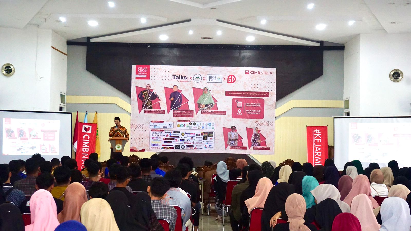 Lhokseumawe – Kejar Mimpi Lhokseumawe by CIMB Niaga berkolaborasi dengan Putra-Putri Komunikasi Universitas Malikussaleh, Pusat Studi Gender dan Anak (PGSA) IAIN Lhokseumawe dan Sandination menggelar Kejar Mimpi Talk’s Lhokseumawe 10 dengan mengungsung tema “Improvement For Bright Generation” di Aula FEBI IAIN Lhokseumawe, Sabtu/20/05/2023.