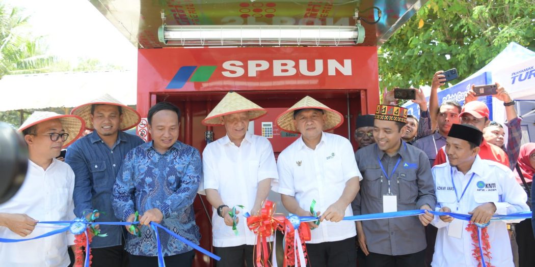 Peresmian SPBU Nelayan, ditandai dengan pengguntingan pita secara bersama oleh Menkop UKM dan Penjabat Gubernur Aceh serta Peusijuek yang dilakukan oleh Tgk Malikul Imam Meunasah Gampong Mon Ikeun Kecamatan Lhoknga, Kabupaten Aceh Besar.