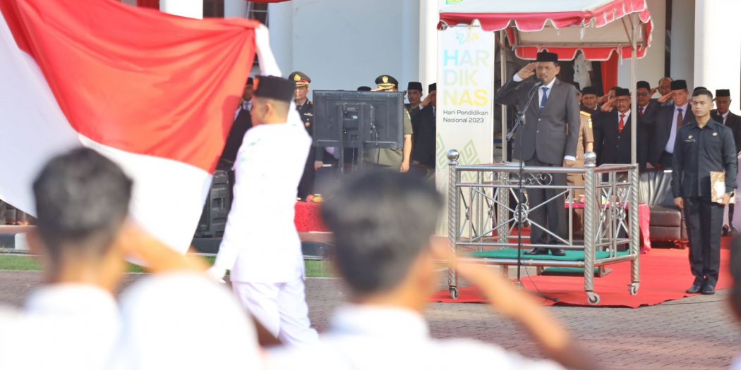 BANDA ACEH – Asisten I Sekda Aceh, M. Jafar, menjadi inspektur upacara Hari Pendidikan Nasional (HPN) tahun 2023 dan Hari Otonomi Daerah ke 27, yang digelar di Kantor Gubernur Aceh, Selasa (02/05/2023). Upacara itu diikuti oleh para perwakilan pimpinan Forkopimda Aceh, para Kepala SKPA, para guru dan perwakilan siswa dari Kota Banda Aceh.
