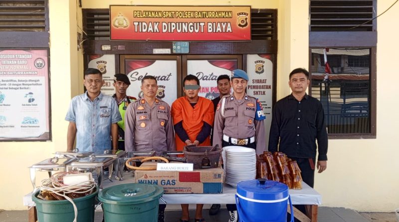 BANDA ACEH – MMW (27) warga Gampong Ateuk Pahlawan ditangkap Unit Resintel Polsek Baiturrahman, Polresta Banda Aceh setelah terbukti melalui rekaman CCTV mencuri barang pecah belah milik Kaum Ibu Dusun Pahlawan, Gampong Ateuk Pahlawan, Senin (3/7/2023).