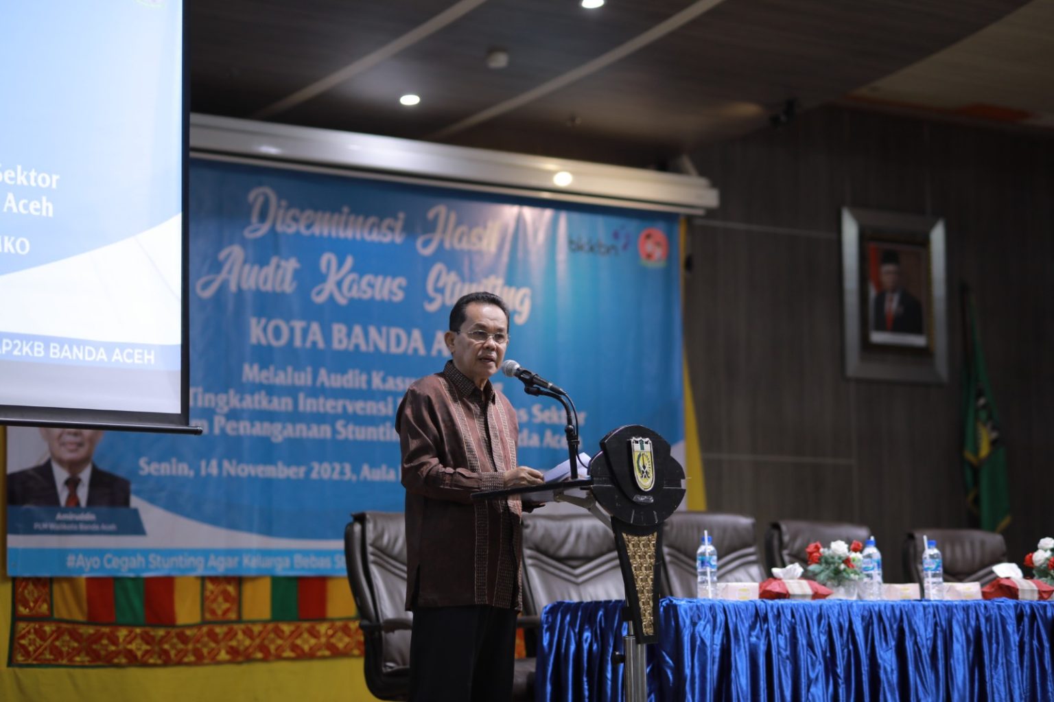 BANDA ACEH – Pelaksanaan harian (Plh) Wali Kota Banda Aceh, Amiruddin SE MSi membuka secara resmi kegiatan Diseminasi Hasil Audit Kasus Stunting Banda Aceh tahun 2023 pada Kamis, 13 Juli 2023, di aula lantai IV Gedung Mawardy Nurdin, lingkungan sekretariat Pemko Banda Aceh.