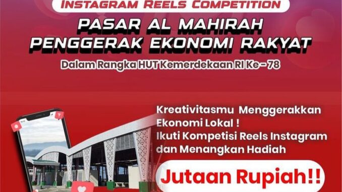 BANDA ACEH – Dinas Koperasi Usaha Kecil Menengah dan Perdagangan (Diskopukmdag) Kota Banda Aceh, bekerjasama dengan Serambi Indonesia menyelenggarakan Instagram Reels Competition dengan tema ‘Pasar Al Mahirah Penggerak Ekonomi Rakyat’.