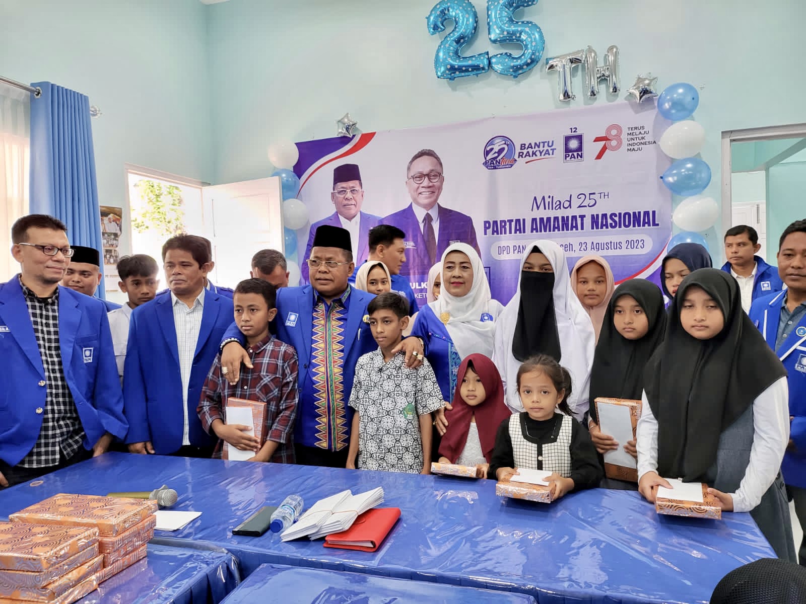BANDA ACEH – Partai Amanat Nasional (PAN) berusia tepat 25 tahun pada Rabu, 23 Agustus 2023. DPD PANBanda Aceh menggelar syukuran bersama anak yatim dan warga di kantor PAN kawasan Simpang Jam, Kecamatan Baiturrahman.
