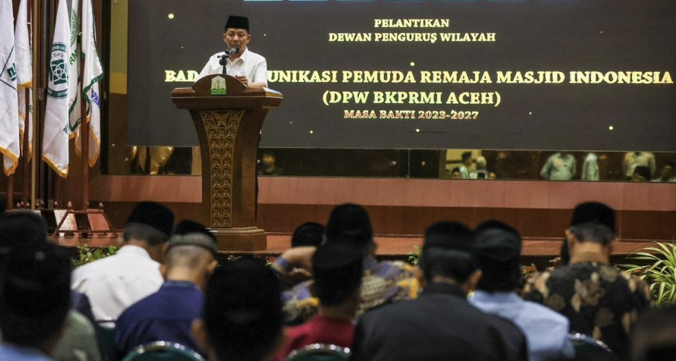 BANDA ACEH – Penjabat (Pj) Gubernur Aceh, Achmad Marzuki, menghadiri pelantikan pengurus DPW Badan Komunikasi Pemuda Remaja Masjid Indonesia (BKPRMI) Aceh periode 2023-2027, di Anjong Mon Mata, Komplek Meuligoe Gubernur, Selasa, (29/8/2023) malam.