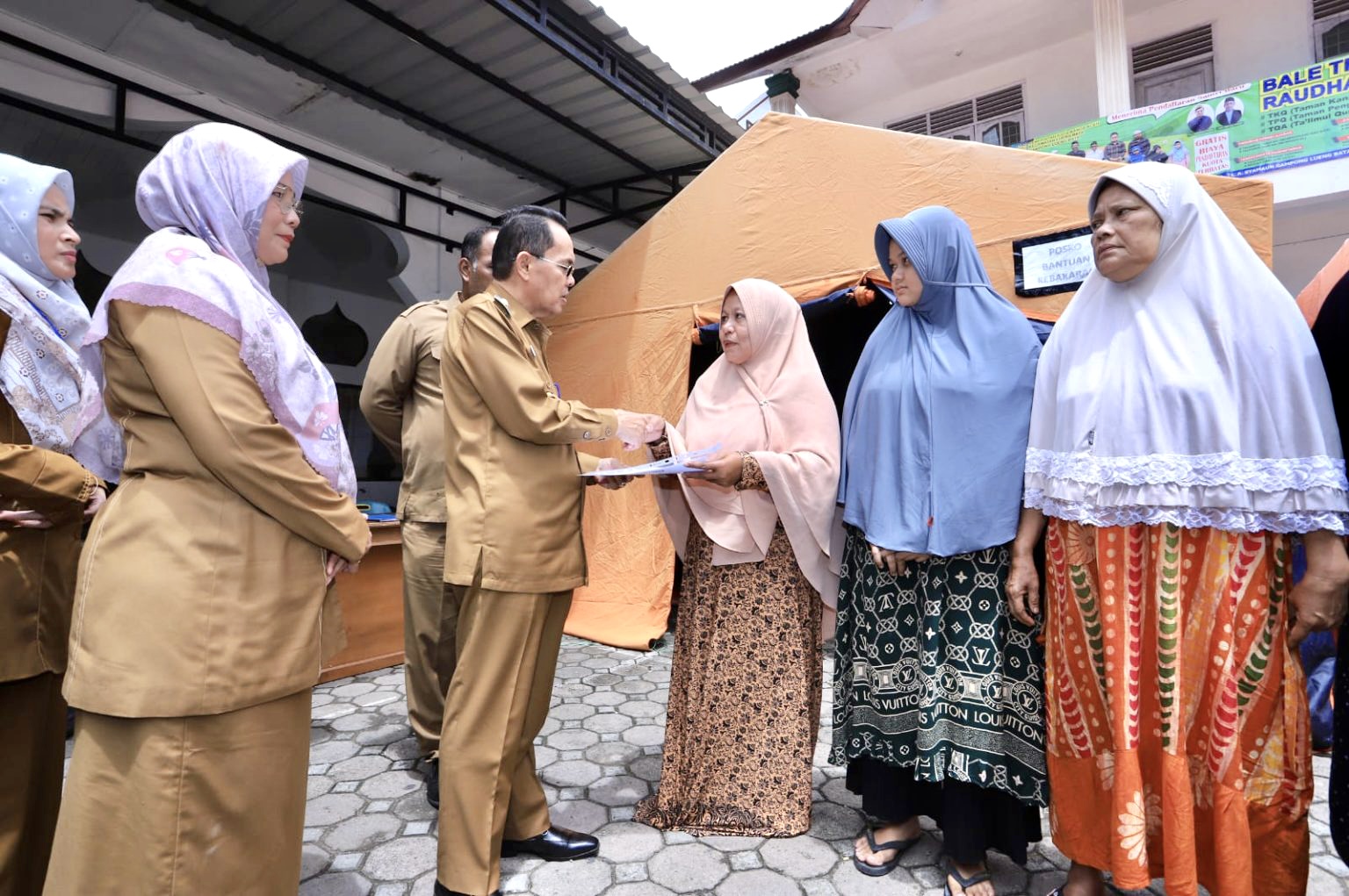 BANDA ACEH – Pj Wali Kota Banda Aceh, Amiruddin menyerahkan dokumen Administrasi Kependudukan (Adminduk) untuk para korban kebakaran di Lueng Bata. Acara penyerahan dokumen Adminduk ini dilakukan di halaman Kantor Keuchik gampong (desa) setempat, Senin (25/9/2023).