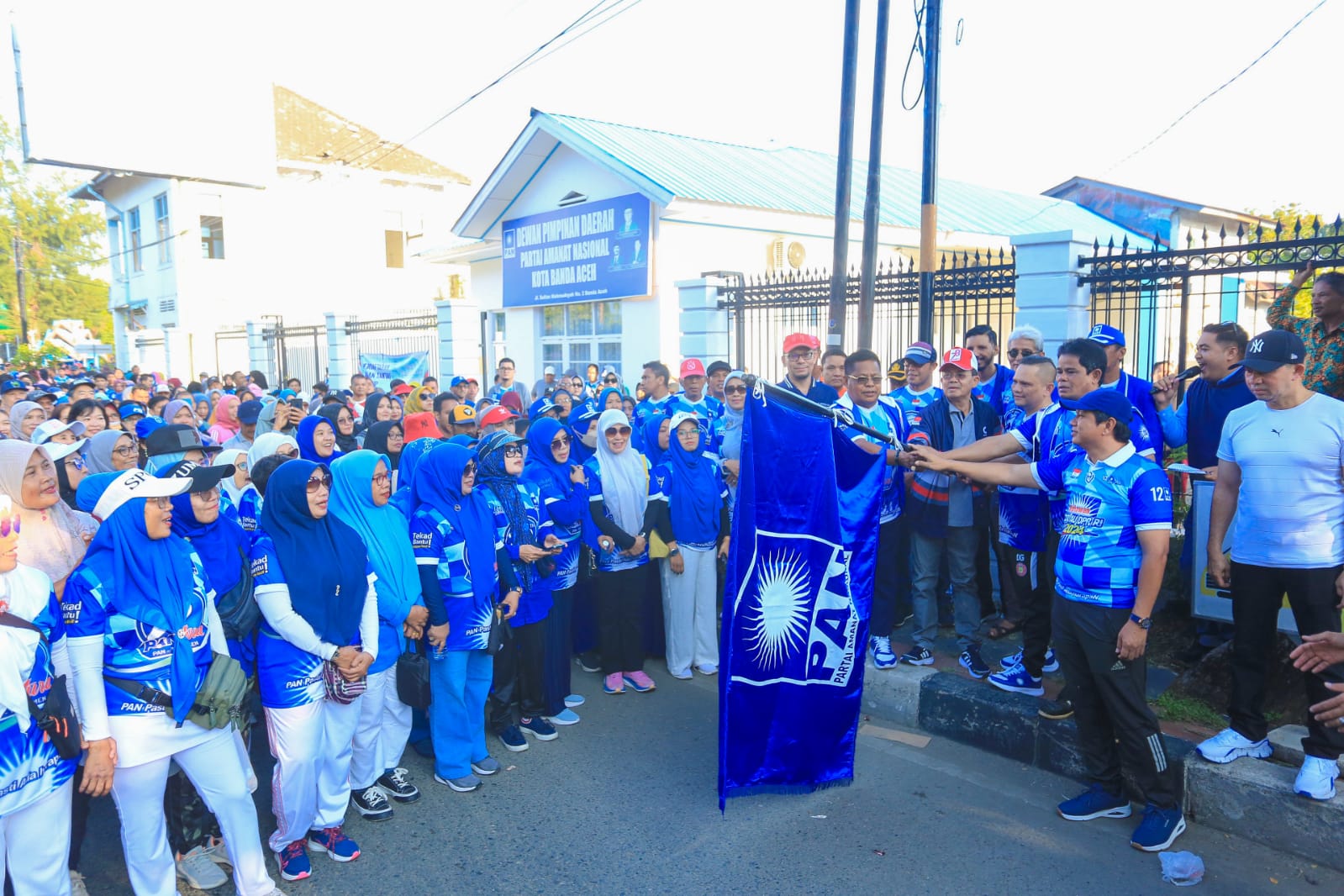 BANDA ACEH – Pj Wali Kota Banda Aceh Amiruddin, bersama Anggota Komisi III DPR RI H Nazaruddin Dek Gam dan Ketua DPD Partai Amanat Nasional (PAN) Banda Aceh Aminullah Usman melepas 5000 peserta Fun Walk DPD PAN Banda Aceh, Minggu, 1 Oktober 2023, di depan Kantor DPD PAN Banda Aceh, kawasan simpang jam Banda Aceh.