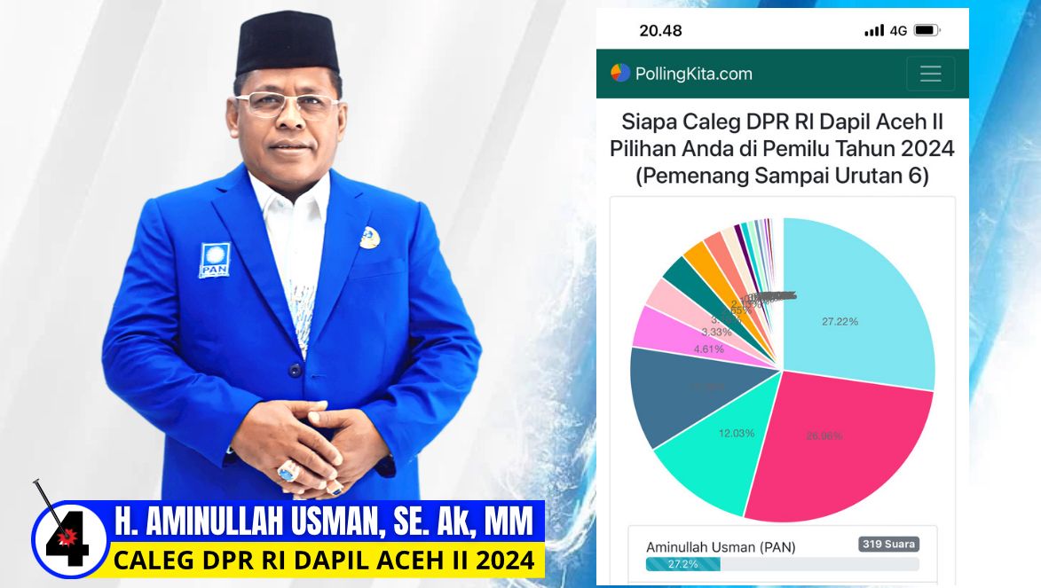 BANDA ACEH – Caleg DPR RI Dapil Aceh II, H Aminullah Usman SE Ak MM memimpin perolehan polling survei online “Siapa Caleg DPR RI Dapil Aceh II Pilihan Anda di Pemilu Tahun 2024 (Pemenang Sampai Urutan 6)”
