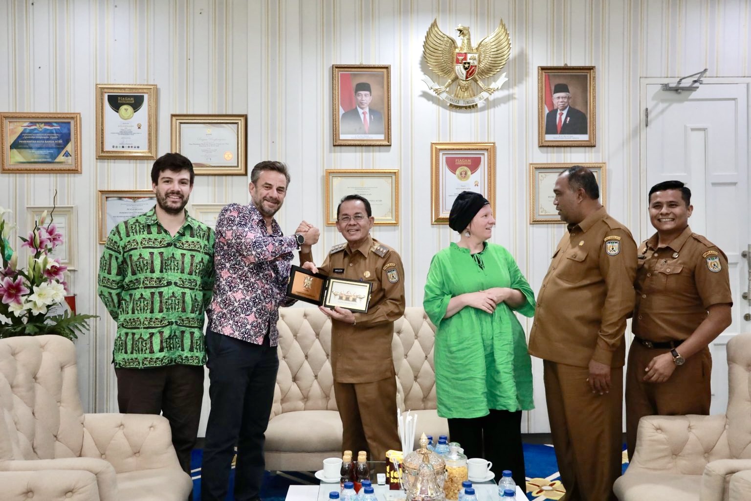 Kunjungan Steve dan beberapa orang staf disambut oleh Pj Wali Kota Banda Aceh, Amiruddin bersama Asisten I Bachtiar dan Kabag Pemerintahan Muhammad Ridha di pendopo wali kota, Senin (13/11/2023).