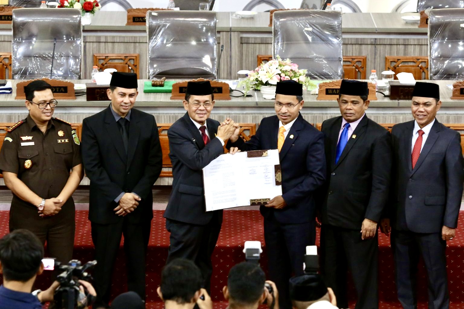 Pengesahan RAPBK Banda Aceh 2024 ditandai dengan penandatanganan berita acara persetujuan bersama oleh Pj Wali Kota Banda Aceh Amiruddin dan Ketua DPRK Banda Aceh T Farid Nyak Umar serta dua wakil ketua Usman dan Isnaini Husda.