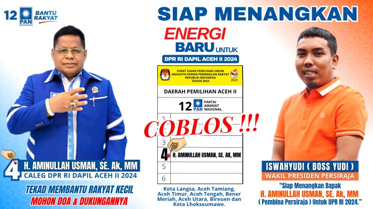 “Ya benar, untuk Pemilu legislatif 2024 mendatang, saya mendukung penuh Pembina Persiraja Bapak Aminullah Usman yang dijuluki Bang Carlos dengan crossing maut ala Roberto Carlos Brazil, yang saat ini merupakan Caleg PAN DPR RI Dapil Aceh II nomor urut 4.” Ujar sosok yang akrab disapa Bos Yudi kepada media ini, Jumat (29/12).