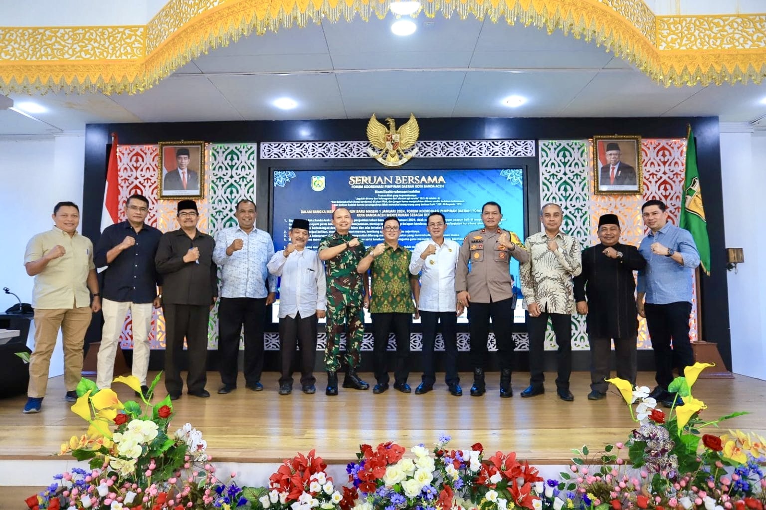 Pada kesempatan itu, Forkopimda Banda Aceh turut mengeluarkan seruan bersama sebagai pedoman bagi masyarakat dalam rangka memasuki tahun baru masehi 1 Januari 2024. Seruan bersama berisi tujuh poin di maksud, ditandatangani oleh Pj Wali Kota Banda Aceh, Ketua DPRK, Kapolresta, Dandim 0101/KBA, Kajari, Ketua Pengadilan Negeri, Ketua Mahkamah Syariah, dan Ketua MPU Banda Aceh. (*)