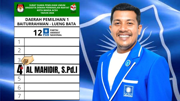 Pemuda yang akrab disapa Al Mahidir ini maju sebagai Caleg PAN DPRK Banda Aceh Daerah pemilihan (Dapil) 1, yakni Kecamatan Lueng Bata dan Baiturrahman.