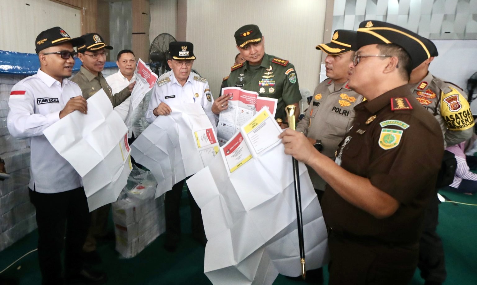 BANDA ACEH – Pj Wali Kota Banda Aceh, Amiruddin SE MSi bersama unsur Forkopimda melakukan pemantauan gudang logistik dan proses pelipatan surat suara dan Pemilu 2024. Pemantauan tersebut dalam rangka melihat langsung kesiapan pemilu serentak yang akan dilaksanakan pada 14 Februari 2024 mendatang.