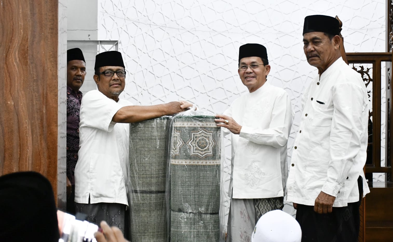 Usai pelaksanaan salat Isya berjamaah, Pj Wali Kota Amiruddin menyerahkan bantuan dana kemakmuran masjid senilai Rp12 juta berikut paket ambal masjid, air mineral, dan kurma