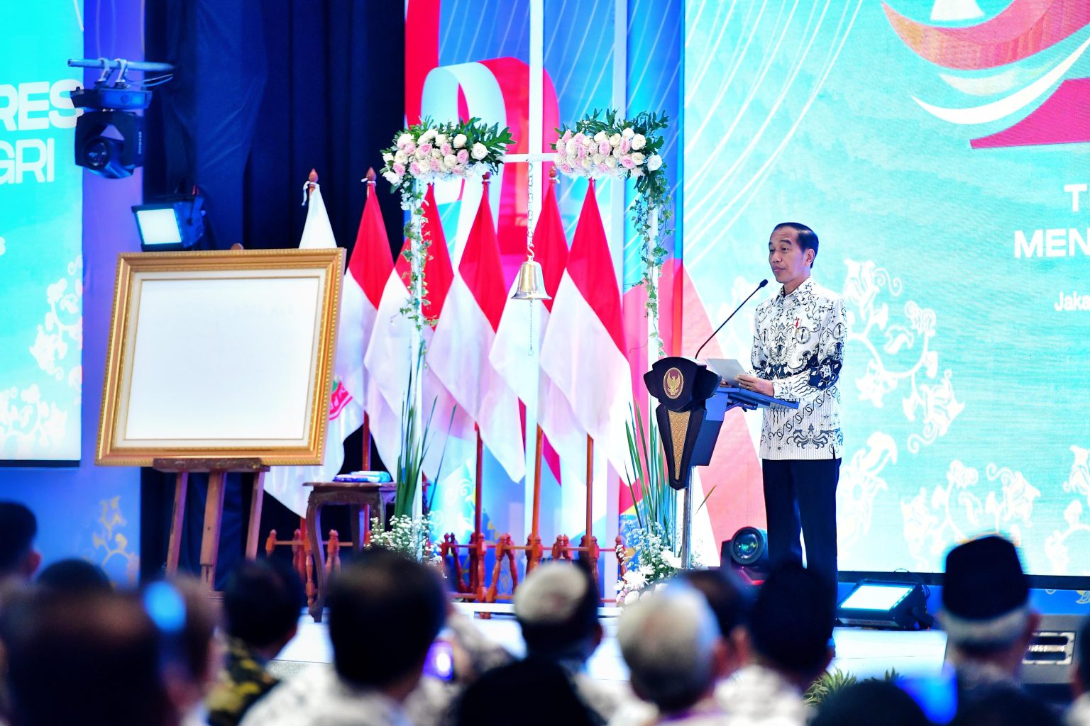 JAKARTA – Presiden RI Joko Widodo (Jokowi) membuka Kongres XXIII Persatuan Guru Republik Indonesia (PGRI), di Hotel Grand Sahid Jaya, Jakarta, Sabtu (02/03/2024). Dalam sambutannya, Presiden Jokowi menekankan pentingnya menciptakan lingkungan sekolah yang aman dan nyaman untuk menjamin kesuksesan pendidikan dan pembentukan siswa unggul.