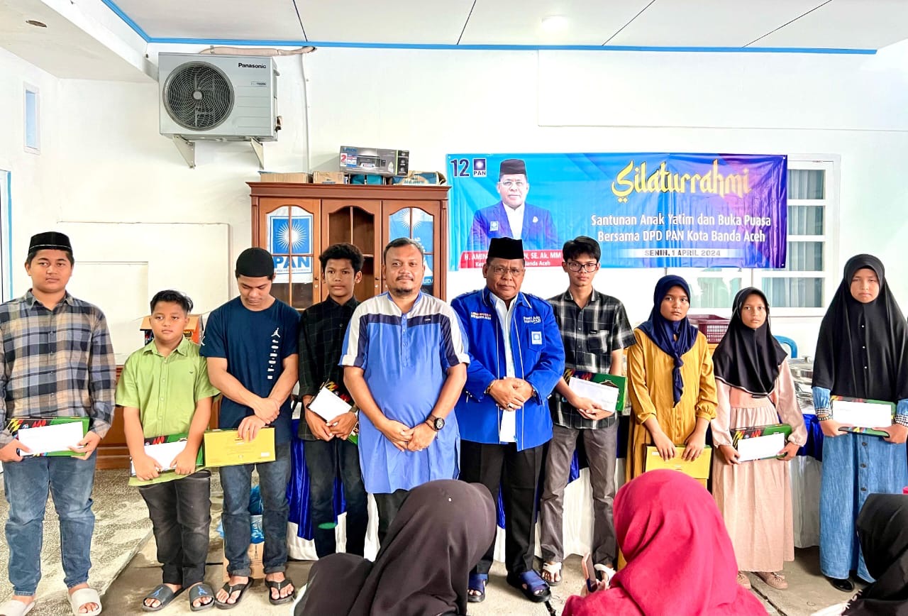 BANDA ACEH – DPD PAN Banda Aceh menggelar kegiatan silaturahmi, santunan puluhan anak yatim dan buka puasa bersama, di halaman sekretariat kantor DPD PAN Kota Banda Aceh, kawasan Simpang Jam Banda Aceh, Senin, 1 April 2024.
