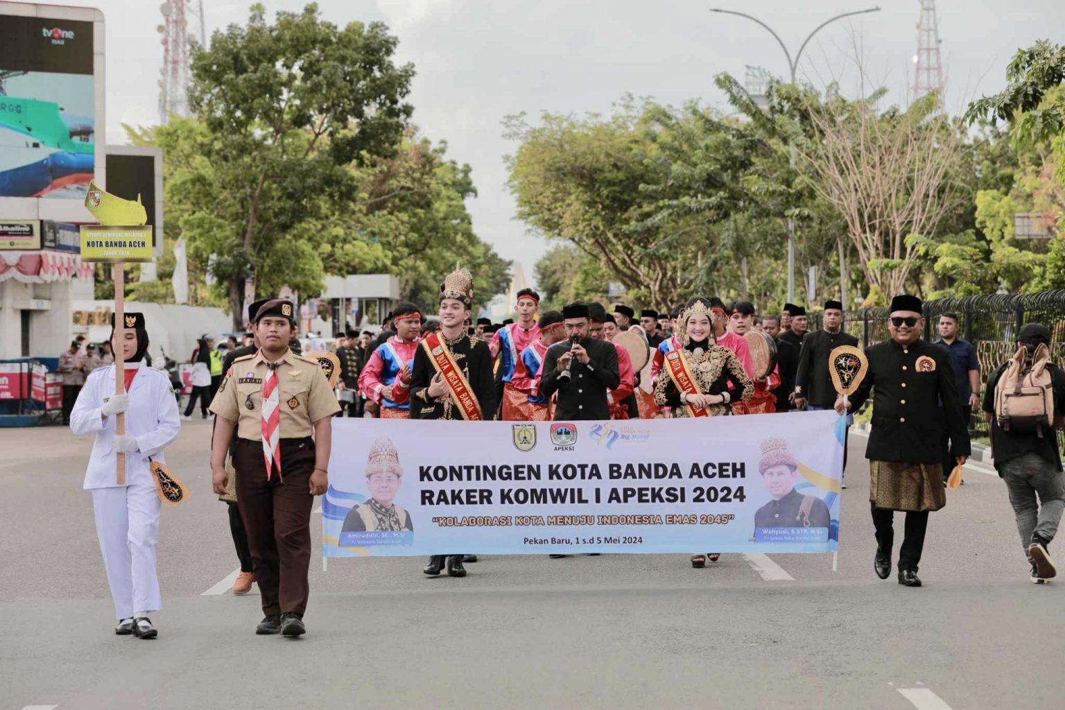 PEKANBARU – Delegasi Kota Banda Aceh menyita perhatian pada Pawai Budaya Apeksi Komwil I Sumatera yang digelar di Pekanbaru pada Jumat (3/5/2024).