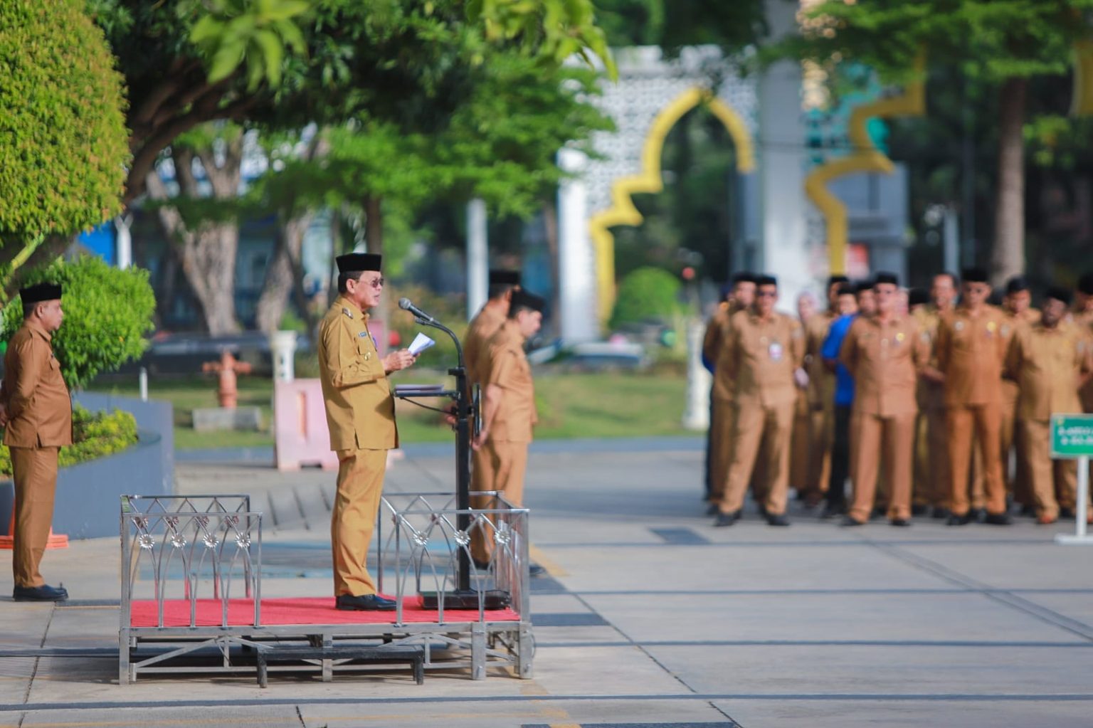 BANDA ACEH – Penjabat (Pj) Wali Kota Banda Aceh, Amiruddin SE MSi memimpin apel gabungan di halaman Balai Kota yang di ikuti oleh seluruh OPD Pemerintah Kota Banda Aceh. Senin, (10 Juni 2024).