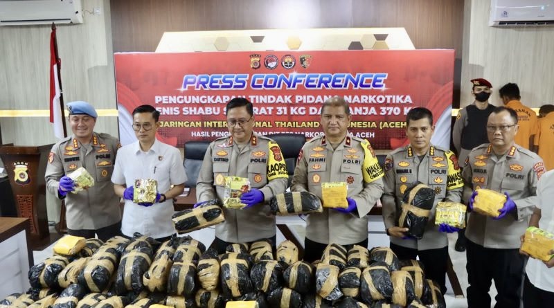 BANDA ACEH – Direktorat Reserse Narkoba (Ditresnarkoba) Polda Aceh berhasil mengungkap peredaran gelap narkotika jenis sabu jaringan internasional, Thailand—Indonesia (Aceh), seberat 31 kg.