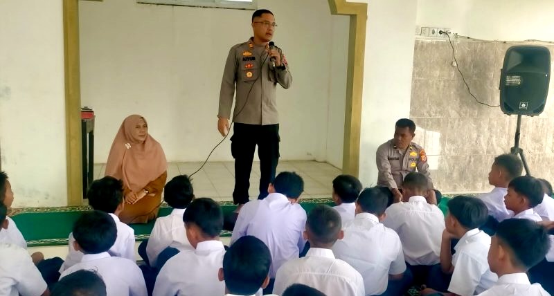 BANDA ACEH – Kapolsek Ulee Lheue, AKP Aiyub sosialisasikan bahaya narkoba di SMP Negeri 11 Banda Aceh sebagai bagian dari upaya pencegahan penyalahgunaan narkotika di kalangan generasi muda. Kegiatan ini berlangsung pada Selasa (16/7/1014) di Musalla setempat.