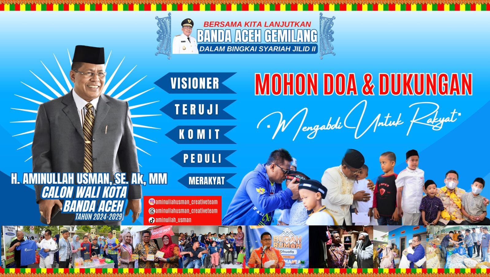 Aminullah juga menegaskan bahwa pengembangan ekonomi syariah akan menjadi salah satu fokus utama dalam masa kepemimpinan berikutnya. “Banda Aceh memiliki potensi besar dalam pengembangan ekonomi syariah, dan saya berkomitmen untuk menjadikan kota ini sebagai pusat ekonomi syariah yang unggul di Indonesia,” tambahnya.