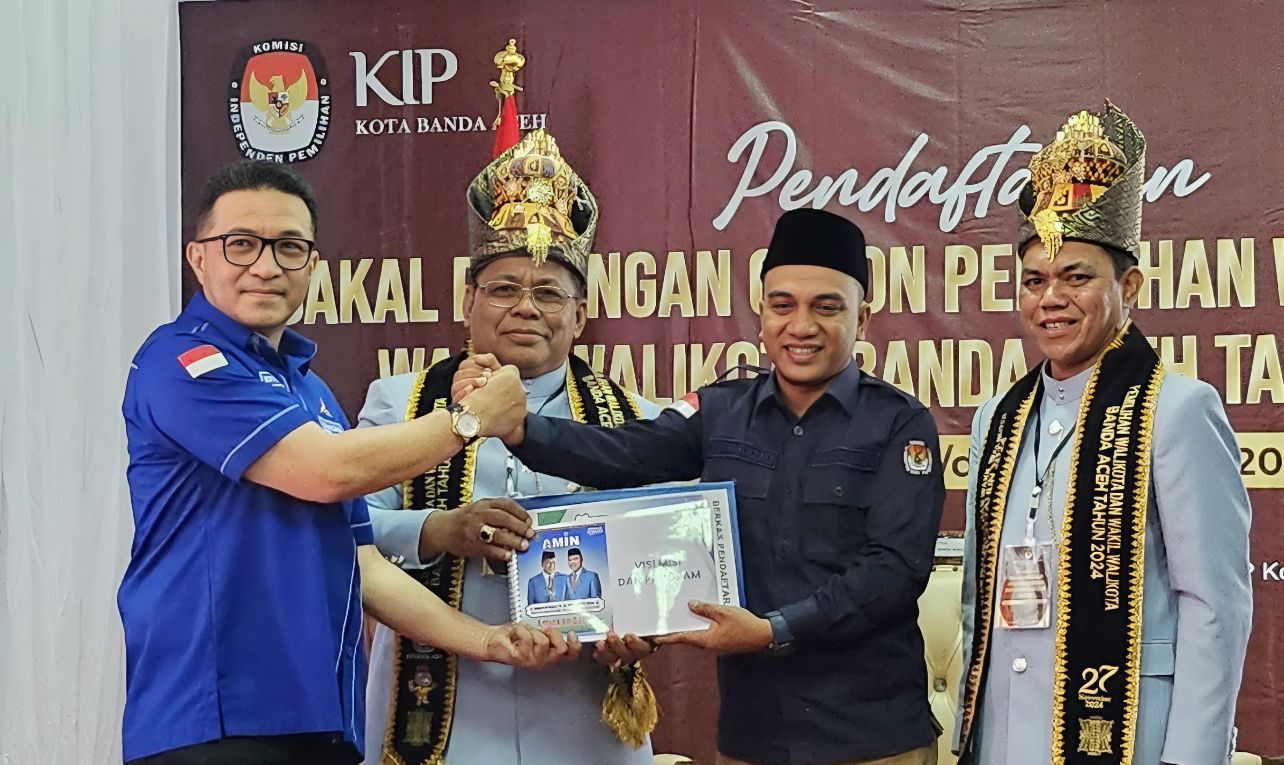Paslon AMIN didukung oleh Partai Amanat Nasional (PAN), Partai Demokrat, Partai Kebangkitan Bangsa (PKB), Partai Adil Sejahtera (PAS) Aceh, Partai Generasi Aceh Besaboh Betaat dan Takwa (GABTHAT), serta Partai Gelora. Ribuan warga kota terlihat antusias mengikuti rangkaian kegiatan deklarasi pasangan AMIN yang dilaksanakan pada Selasa, 27 Agustus 2024, di Gedung Amel Convention Hall, Ulee Kareng, Banda Aceh.