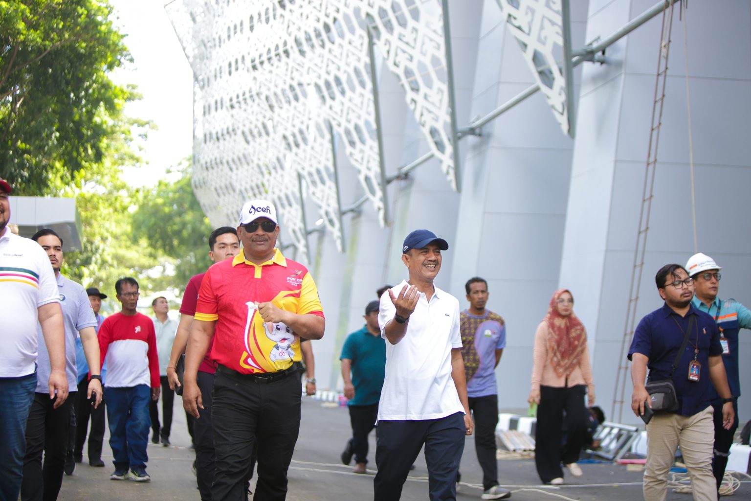 Usai bergotong-royong bersama jajaran pemerintahannya, Ade Surya turut mendampingi Pj Gubernur Aceh Safrizal untuk mengecek kesiapan komplek SHB menjelang opening ceremony PON XXI Aceh-Sumut pada Senin, 9 September 2024.