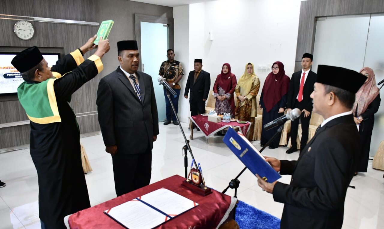 Prosesi pelantikan dan pengambilan sumpah jabatan yang disaksikan Ketua DPRK Banda Aceh Irwansyah serta sejumlah pejabat jajaran Pemko Banda Aceh itu berlangsung dengan khidmat.