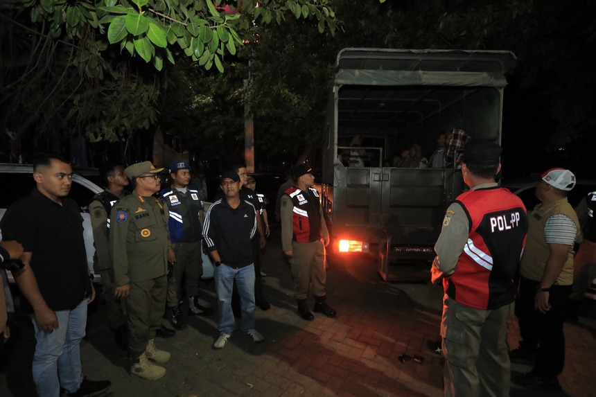 Sebelum bergerak, tim gabungan yang yang terdiri dari unsur Satpol PP/WH kota dan provinsi, BNN, Dishub, dan Polri, terlebih dulu mengikuti apel di halaman balai kota.