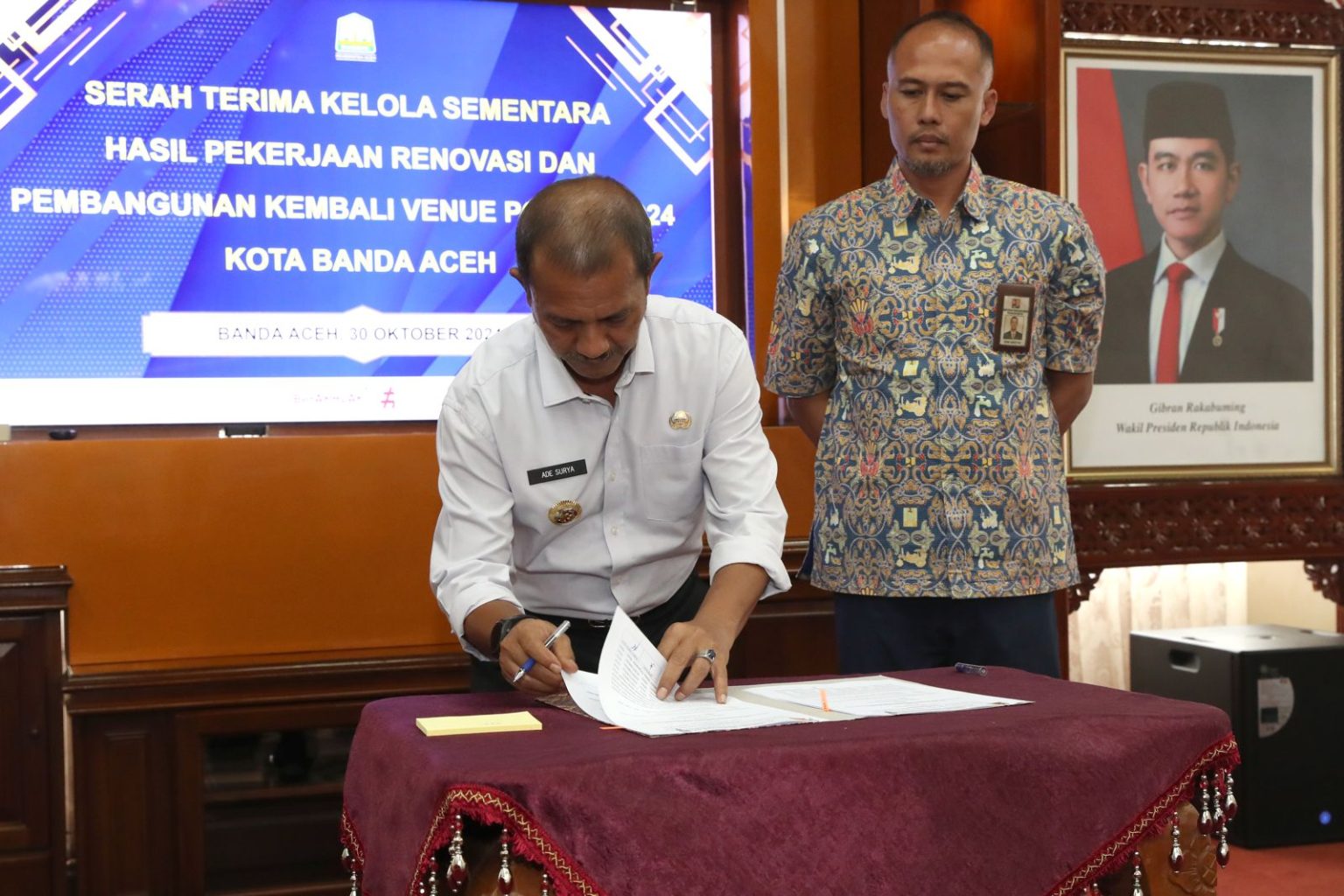 BANDA ACEH – Pemerintah Kota Banda Aceh secara resmi menerima tiga aset hasil pekerjaan renovasi dan pembangunan kembali venue Pekan Olahraga Nasional (PON) XXI lalu.