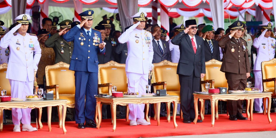 BANDA ACEH – Pelaksana Harian (Plh) Sekretaris Daerah Aceh, Azwardi, menghadiri upacara peringatan Hari Ulang Tahun (HUT) ke-79 Tentara Nasional Indonesia (TNI) yang digelar dengan khidmat di Lapangan Blang Padang, Banda Aceh, Sabtu, 5 Oktober 2024. Upacara ini dihadiri oleh jajaran pimpinan Forum Koordinasi Pimpinan Daerah (Forkopimda) Aceh dan diikuti oleh ribuan prajurit TNI dari berbagai matra.