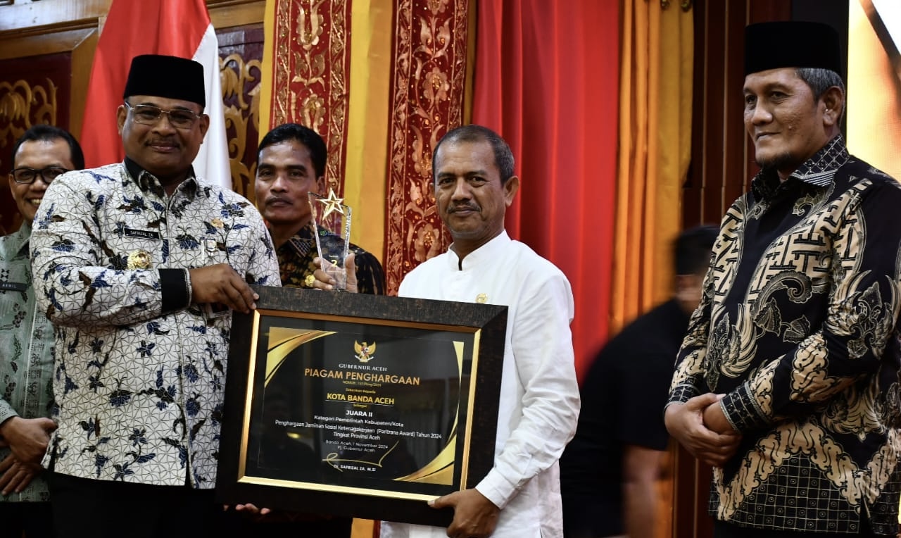 BANDA ACEH – Pemerintah Kota Banda Aceh meraih Penghargaan Jaminan Sosial Ketenagakerjaan (Jamsostek) atau yang lebih dikenal Paritrana Award tingkat Provinsi Aceh tahun 2024.