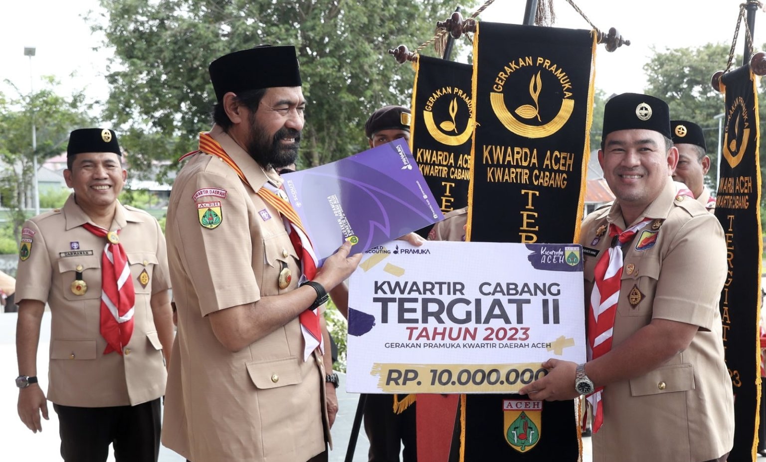 Kegiatan ini juga dirangkai dengan penyerahan penghargaan kepada Kwarcab Pramuka Banda Aceh sebagai Kwarcab Tergiat II Tahun 2023. Penghargaan diserahkan langsung Ketua Kwarda Pramuka Aceh, Muzakkir Manaf kepada Pj Wali Kota Banda Aceh Almuniza Kamal.