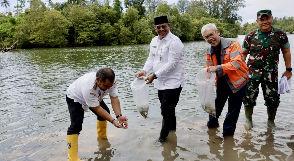 ACEH BESAR – Penjabat (Pj) Gubernur Aceh, Dr. H. Safrizal ZA, M.Si, melepas ribuan calon induk ikan kakap putih di Krueng Raba, Quarry Clay PT Solusi Bangun Andalas (SBA), Lhoknga, Aceh Besar, pada Rabu, 18 Desember 2024. Selain pelepasan ikan, turut dilakukan penanaman bibit pohon sebagai bagian dari komitmen menjaga kelestarian lingkungan.