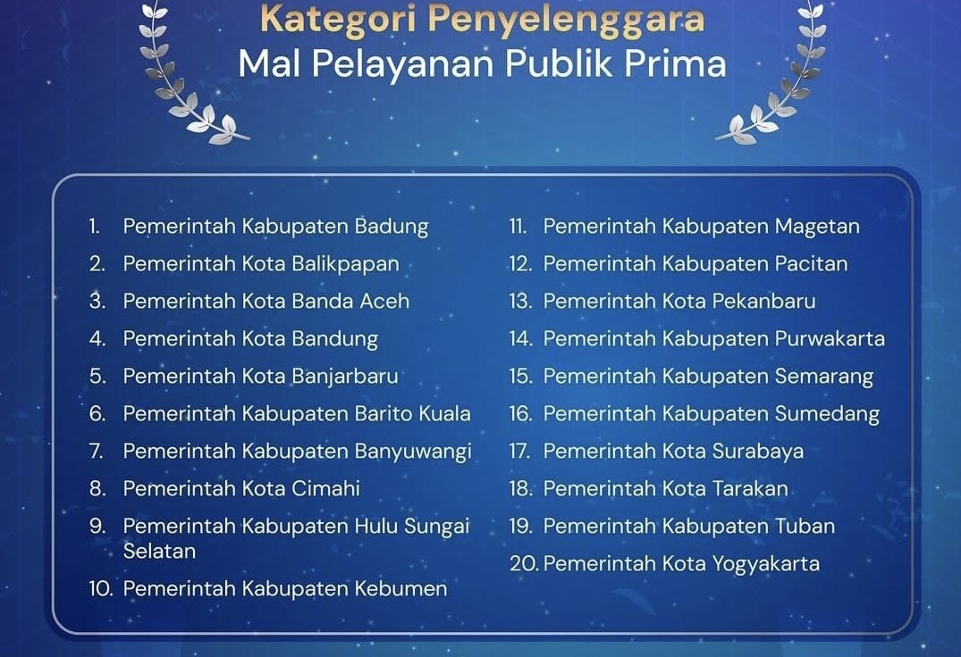 Prestasi diraih MPP Banda Aceh dari Kemenpan RB tersebut yaitu mendapat predikat sebagai Penyelenggara Mal Pelayanan Publik Prima 2024 berdasarkan Kepmen PANRB No. 661/2024 tentang Hasil Evaluasi Penyelenggaraan MPP Tahun 2024.