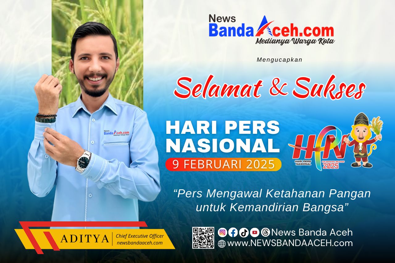 BANDA ACEH – Dalam rangka memperingati Hari Pers Nasional (HPN) 2025 yang jatuh pada 9 Februari 2025, Chief Executive Officer (CEO) newsbandaaceh.com, Aditya mengucapkan selamat kepada seluruh insan pers di Tanah Air. Dengan tema “Pers Mengawal Ketahanan Pangan untuk Kemandirian Bangsa,” HPN tahun ini menekankan pentingnya peran pers dalam mengawasi dan mendukung ketahanan pangan nasional.